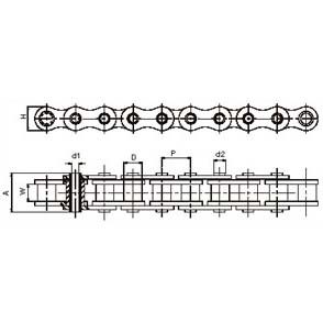 Roller Dia (D) (Max) Plate Height (H)(Max) Pin Inner Diameter (d1) (Min) Pin Outer Diameter (d2) Pin Length (A) (Max) Tensile Strength (Kgf) (Min)