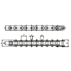 Intl. Ref. No. Diamond Chain No. Pitch (P) Width Betwwen Inner Plates (W) (Min) Roller Dia (D) (Max) Bearing Pin Dia (D) (Max) Plate Height (H) (Max) Width Over Bearing Pin (A) (Max) Width Over Joint Fastener (B) (Max) Transveres Pitch(P1) Tensile Strength (Kgf) (Min)